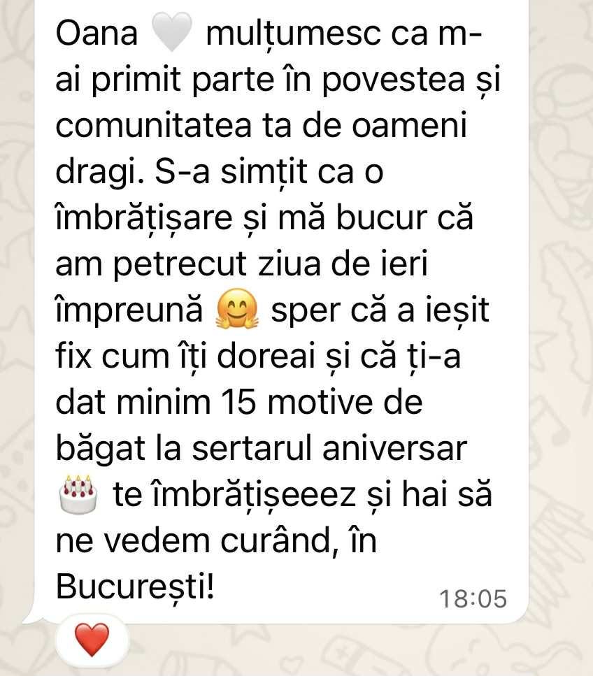 Felicitari, Oana! Imi place TOT! Pentru mine se traduce si ca 15 ani de perseverenta documentata. Cheers to that 🥂💌 🎉🤍
